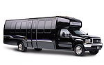 Accommodates 24 Passengers, TV, VCR, CD player, AM/FM dual cassette deck, cloth interior, reclining seats, two way digital communications, intercom system, and rear luggage space. |