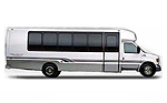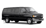 Accommodates 14 passengers, tinted windows, cloth interior AM/FM dual cassette deck, and two way digital communications. Rear luggage space. |