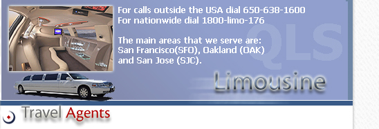 If this is the first time you are booking with QLS, and you are not using an ARC number, you must register your agency with us. Just complete the Travel Agency Registration Form, and fax it along with the following information to 650-648-0440 Travel Agency Registration Form (requires Adobe Acrobat Reader - Click to download) Copy of your IATA or CLIA certificate Completed and signed W-9 (inside US) or W-8 (outside US) form. Once your agency is registered, you can make arrangements by contacting our travel agent specialists at 800-546-6176. Alternatively, you can go to the e-Reservation Center, create a unique user ID and make arrangements on-line. QLS International is pleased to accept registrations of IATA, CLIA, and TRUE TIDS numbers for Travel Agency Identification. Count on World-Class Services QLS’s fleet features only the highest quality, late-model luxury vehicles - including sedans, limousines, SUVs, mini-buses, vans, motor coaches and the exclusive QLS Car and Mercedes-Benz. QLS offers your clients the finest on-the-go amenities and leading edge technology for business travel productivity. QLS accommodates all your clients' special requests, from choice of newspaper to preferred beverages. No detail is too small. QLS chauffeurs are courteous, consummate professionals who set the industry standard for impeccable service and can also provide "mobile concierge" services. Your clients' comfort, safety, and security are guaranteed. GDS Codes for QLS Chauffeured Services Sabre Worldspan Apollo |